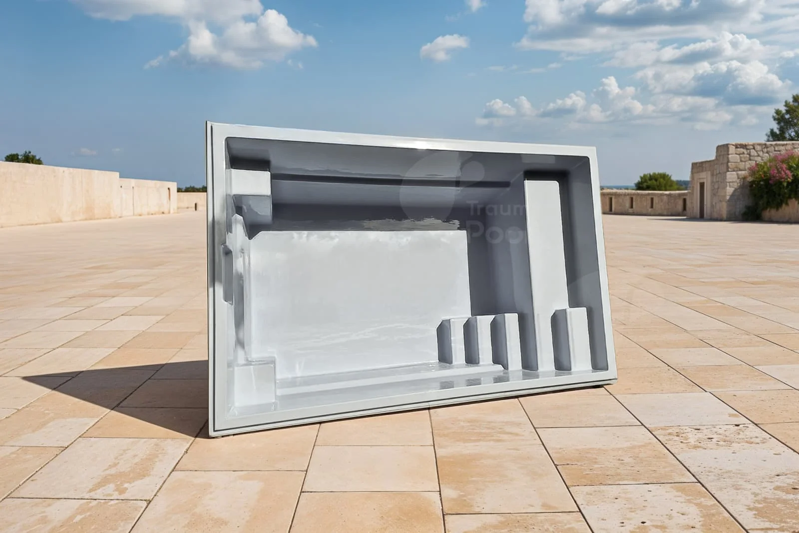 Ein pool becken gfk von Traumpool bietet zahlreiche Vorteile. Sie sind nicht nur leicht zu installieren, sondern auch äußerst wartungsarm. Unsere gfk fertigpool Modelle sind so konzipiert, dass sie den äußeren Einflüssen standhalten und über Jahre hinweg ihre Schönheit bewahren. Das Schwimmbecken gfk ist zudem resistent gegen Algenbildung und UV-Strahlung, was die Pflege erleichtert und die Lebensdauer verlängert.