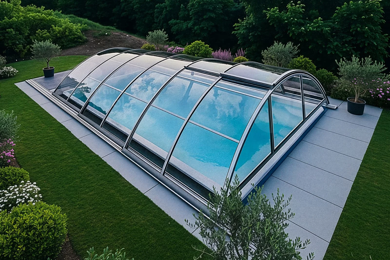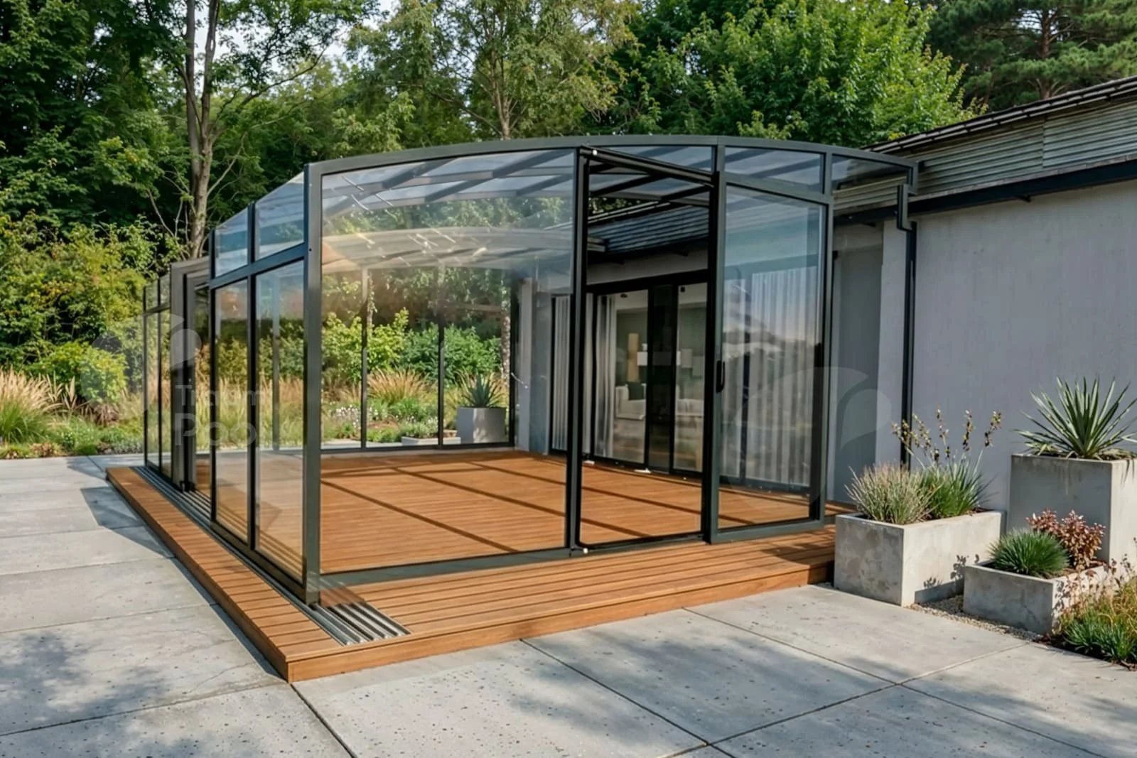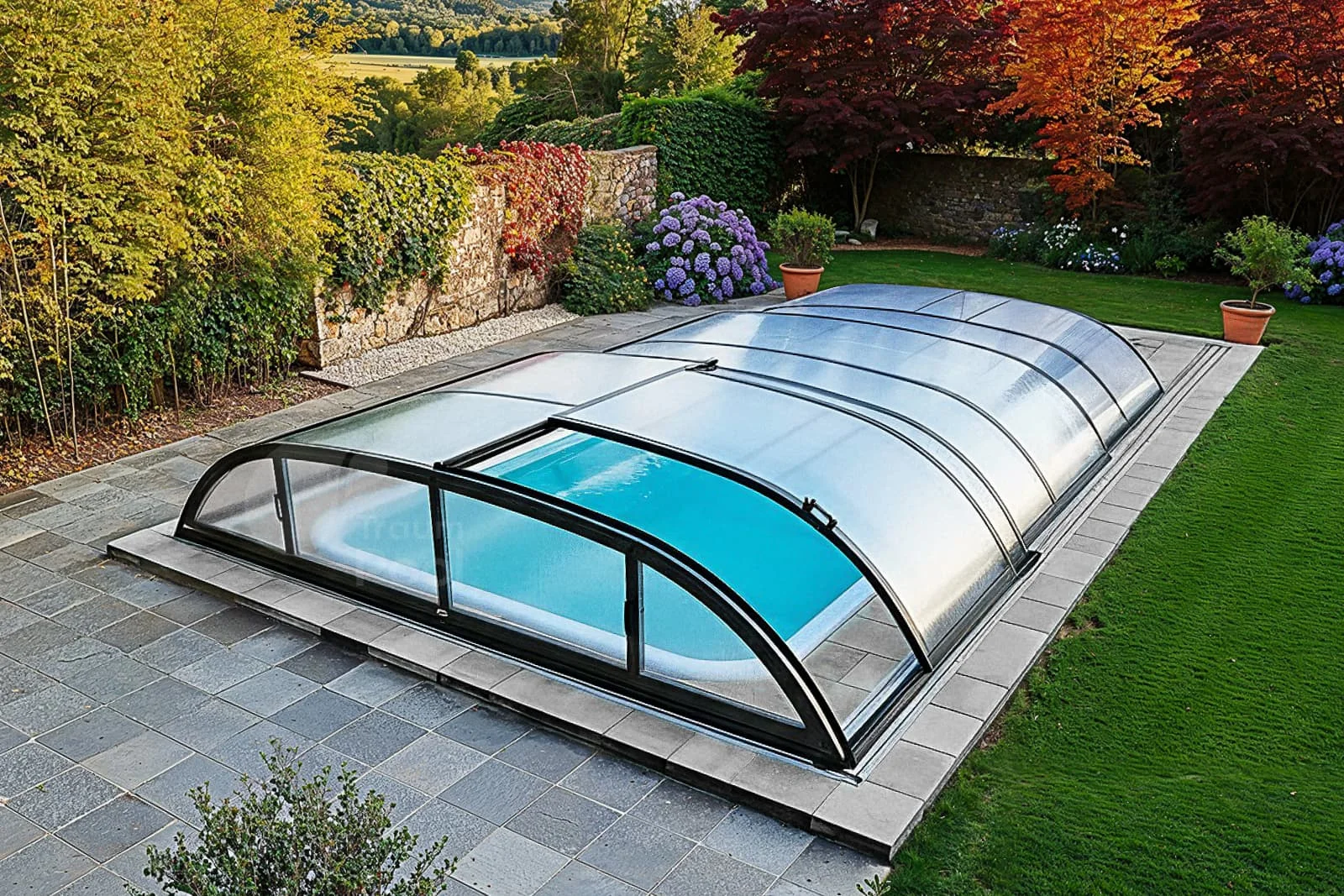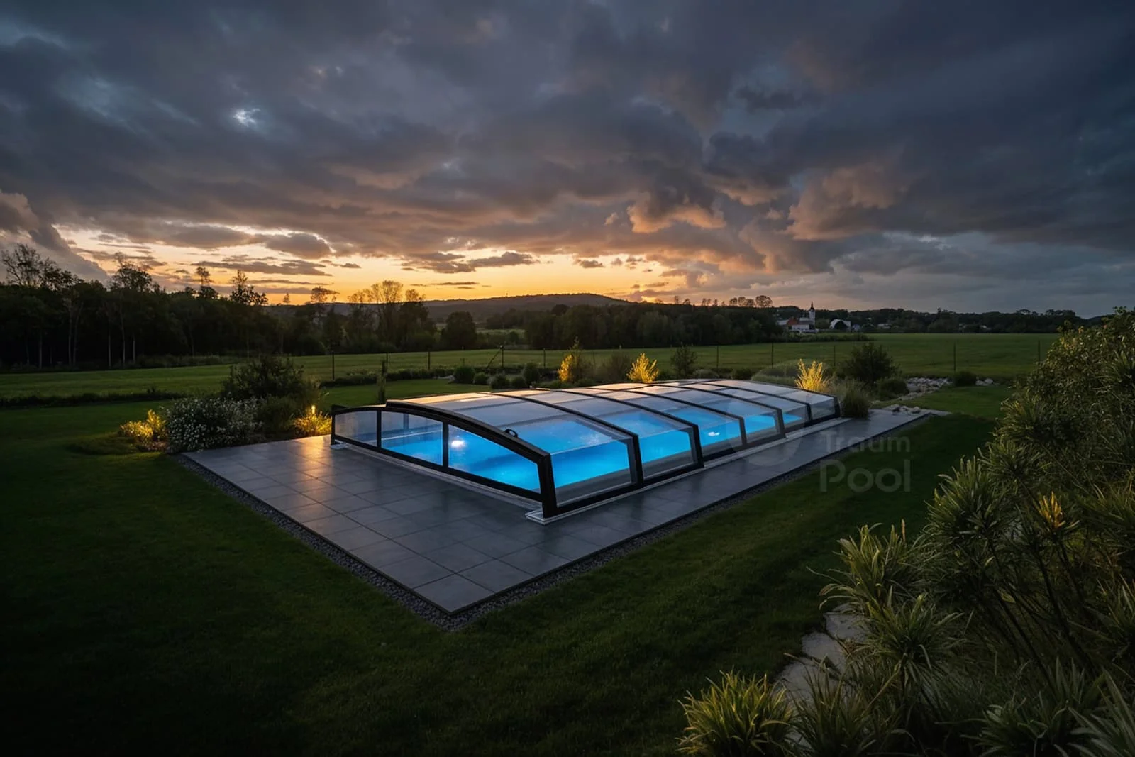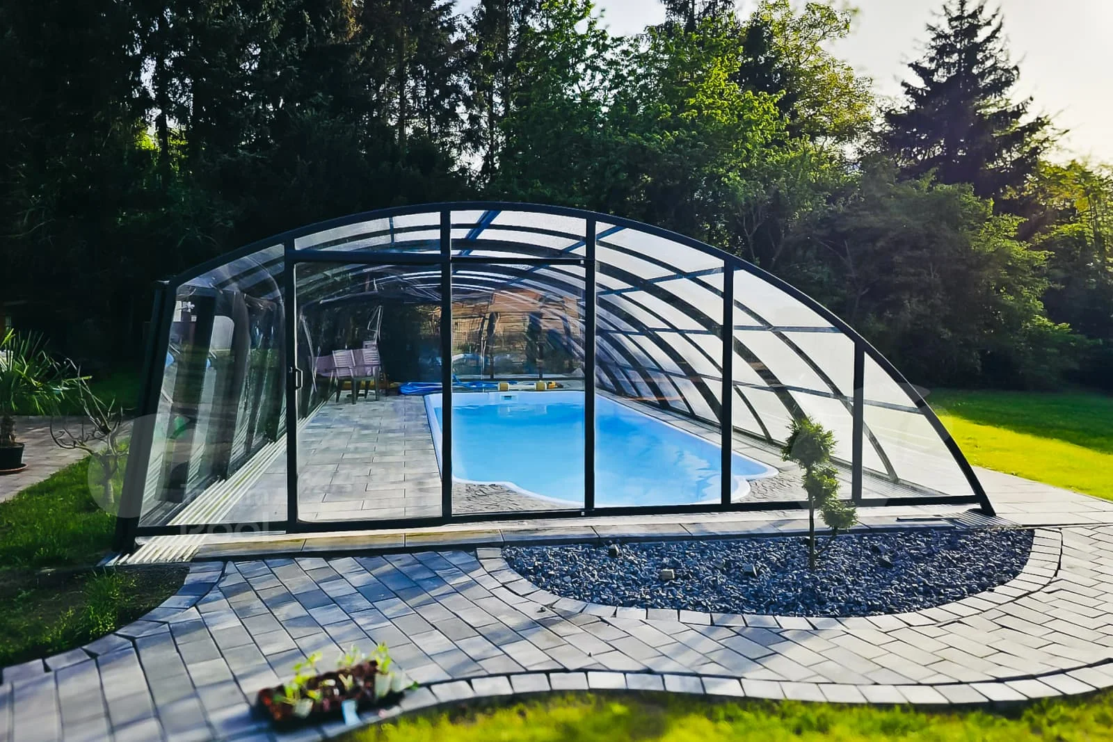 Wenn Sie von einem atypischen Dach träumen, das über die Standardlösungen hinausgeht, dann ist das genau das Richtige für Sie! Zusätzlich zum StandardPoolwasserschutz erhalten Sie ein Zusatzmodul, mit dem Sie Ihren Pool auch nach der Badesaison nutzen können. Wählen Sie ein Gehäuse mit verbesserter Funktionalität und bemerkenswertem Design.